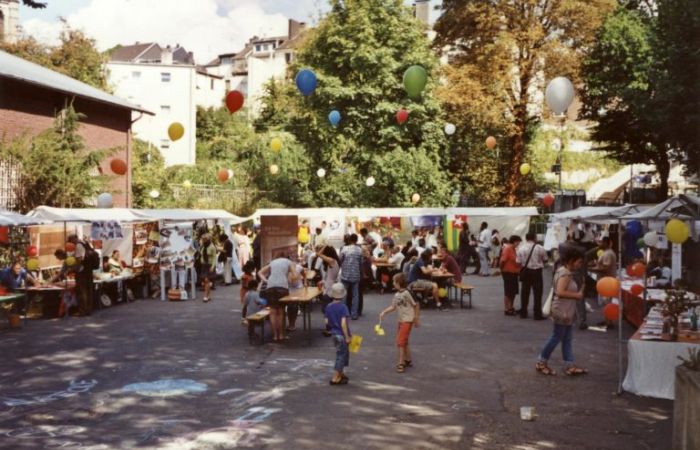 | Frühjahr 1996 | Auf Initiative des Ökologie-Zentrums wird der Innenhof entsiegelt und ökologisch und kinderfreundlich umgestaltet. |